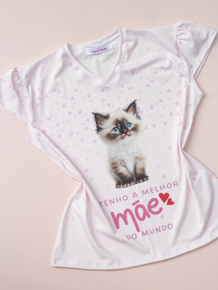 Composição elaborada especialmente para as mamães de pets. Essa blusa é para quem é mamãe de gatinho. A estampa passou pelo processo de Sublimação Total.