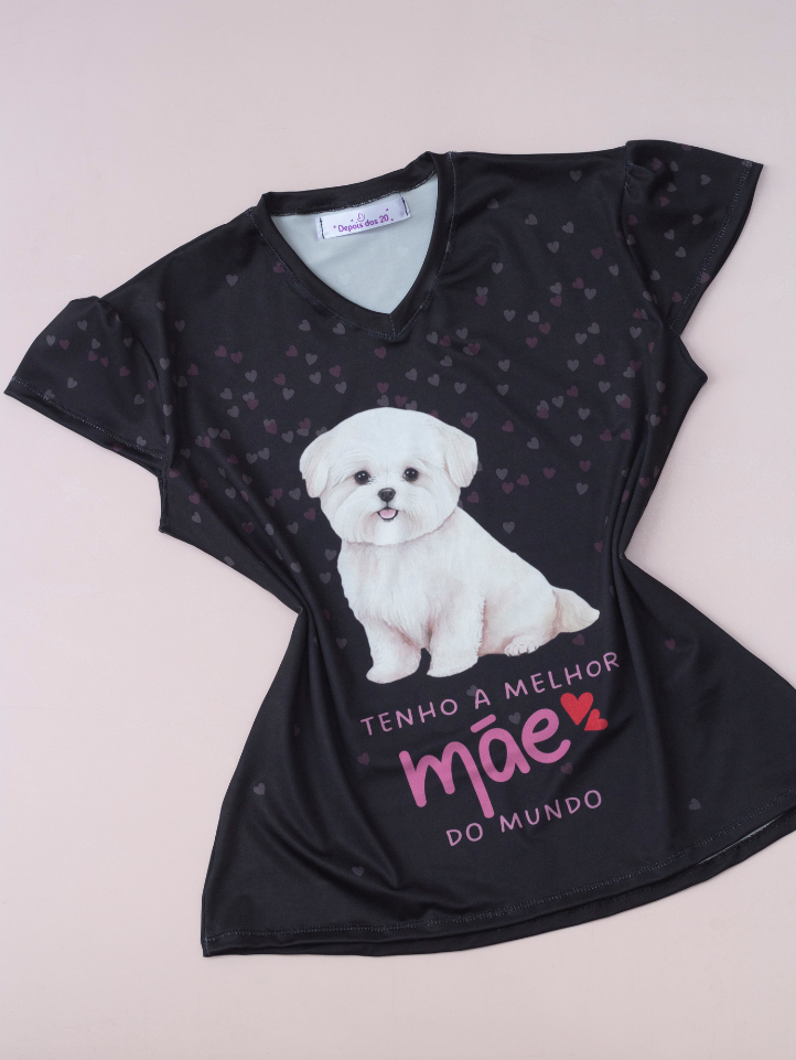 Estampa feita especialmente para as mamães de pets. Essa blusa é para quem tem maltês ou ama qualquer cachorrinho. A estampa passou pelo processo de Sublimação Total.