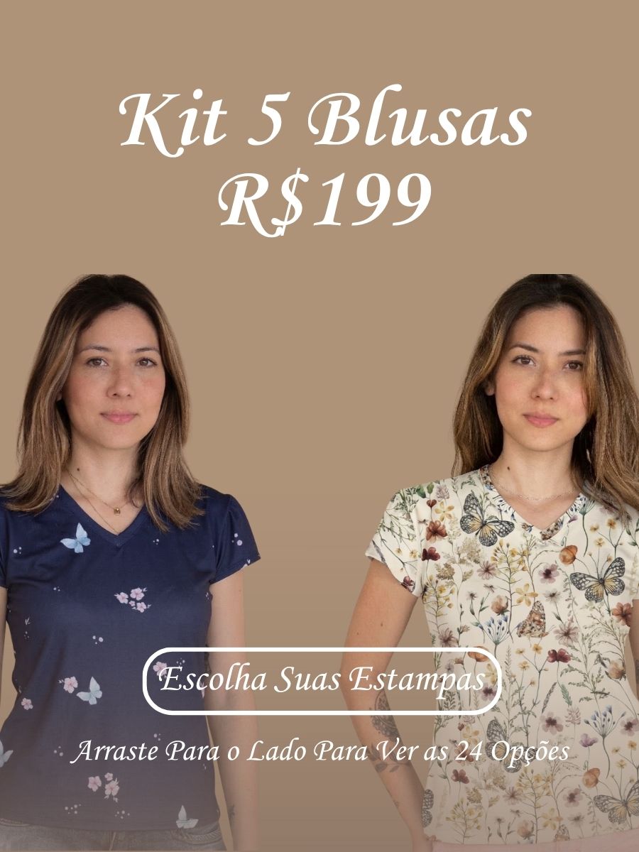 🦋Escolha 5 ESTAMPAS da sua preferência! Após finalizar a compra é só nos enviar nas Observações ou por Whatsapp quais são as 5 estampas que você irá querer! Caso não seja escolhida as estampas em até 24 horas, iremos enviar blusas aleatórias, pois senão irá atrasar nossa produção!